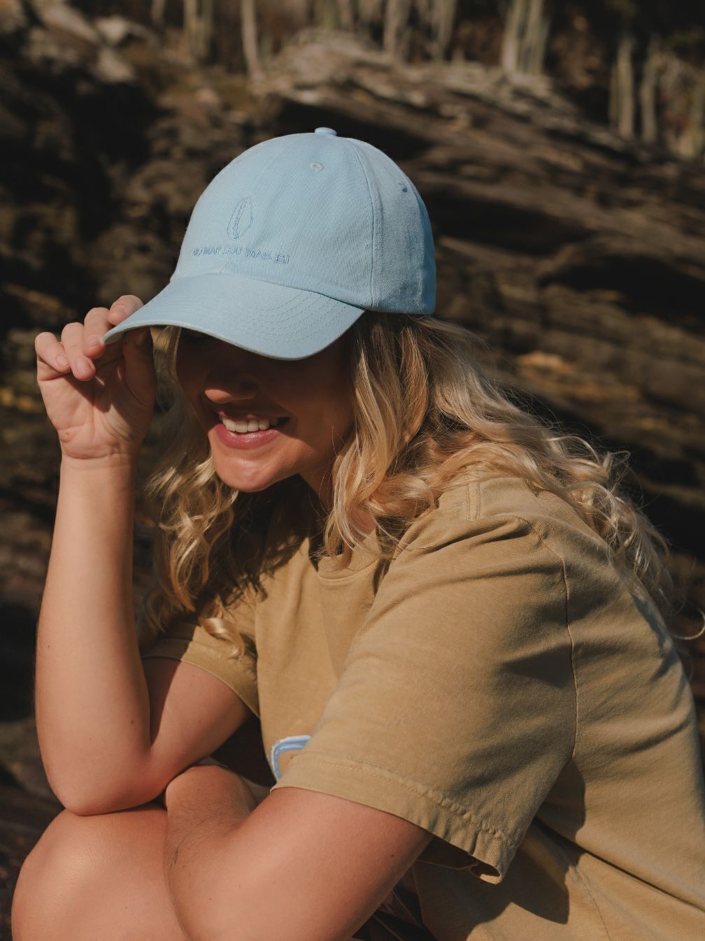 Com visual leve e discreto, o boné búzios traz a frase “no mar sou mais eu” e um búzios bordados na frente em tom suave, combinando com a cor azul claro do tecido.