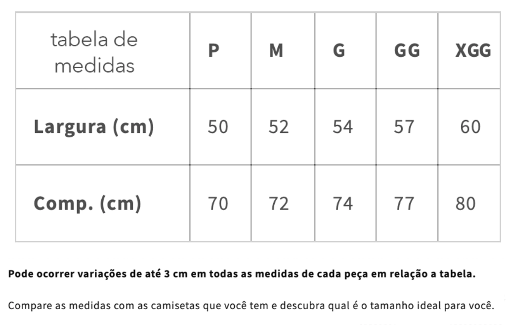(Tabela de medidas está última foto)