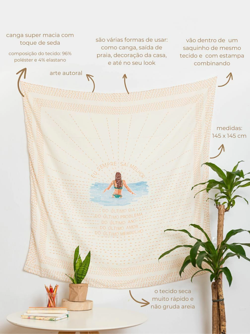 As cangas podem ser usadas de diversas formas, como pareos, saídas de praia, lenços, mantas, e muito mais
