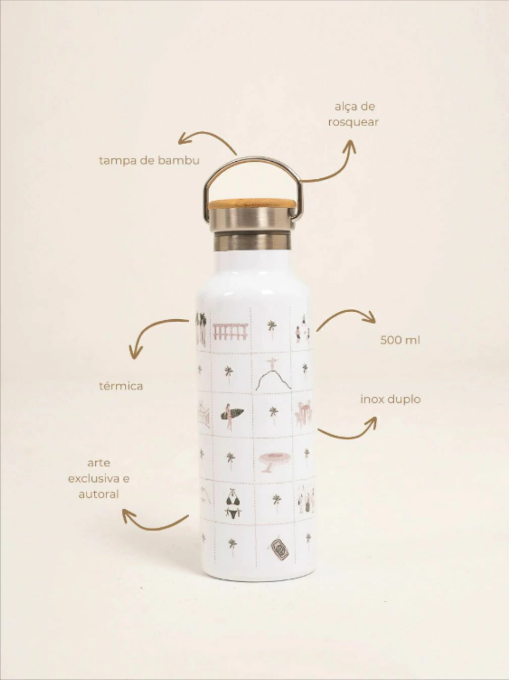 As garrafas mais cariocas são perfeitas para levar sua bebida favorita para qualquer lugar, praia, trabalho, academia… onde quiser! Com estampa exclusiva, nossas garrafas vêm dentro de uma caixa com a mesma arte, ideal para se presentear ou presentear uma pessoa especial !
